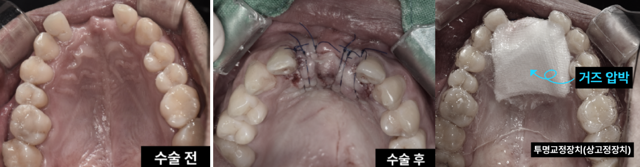 최소 침습으로 동시에 해결! 과잉치 제거 & 임플란트 식립 이백점치과에서는 환자분의 부담을 줄이면서도 최상의 결과를 위해, 과잉치 제거와 동시에 임플란트 식립까지 한 번에 진행하기로 치료 계획을 세웠습니다. 1. 과잉치 제거: 입천장 잇몸을 조심스럽게 열고 잇몸 뼈를 최소한으로 삭제하여 과잉치를 안전하게 발치했습니다. 2. 동시 임플란트 식립: 과잉치 제거 후 바로 그 부위에 임플란트를 정교하게 식립하여 수술 횟수와 치료 기간을 단축했습니다.